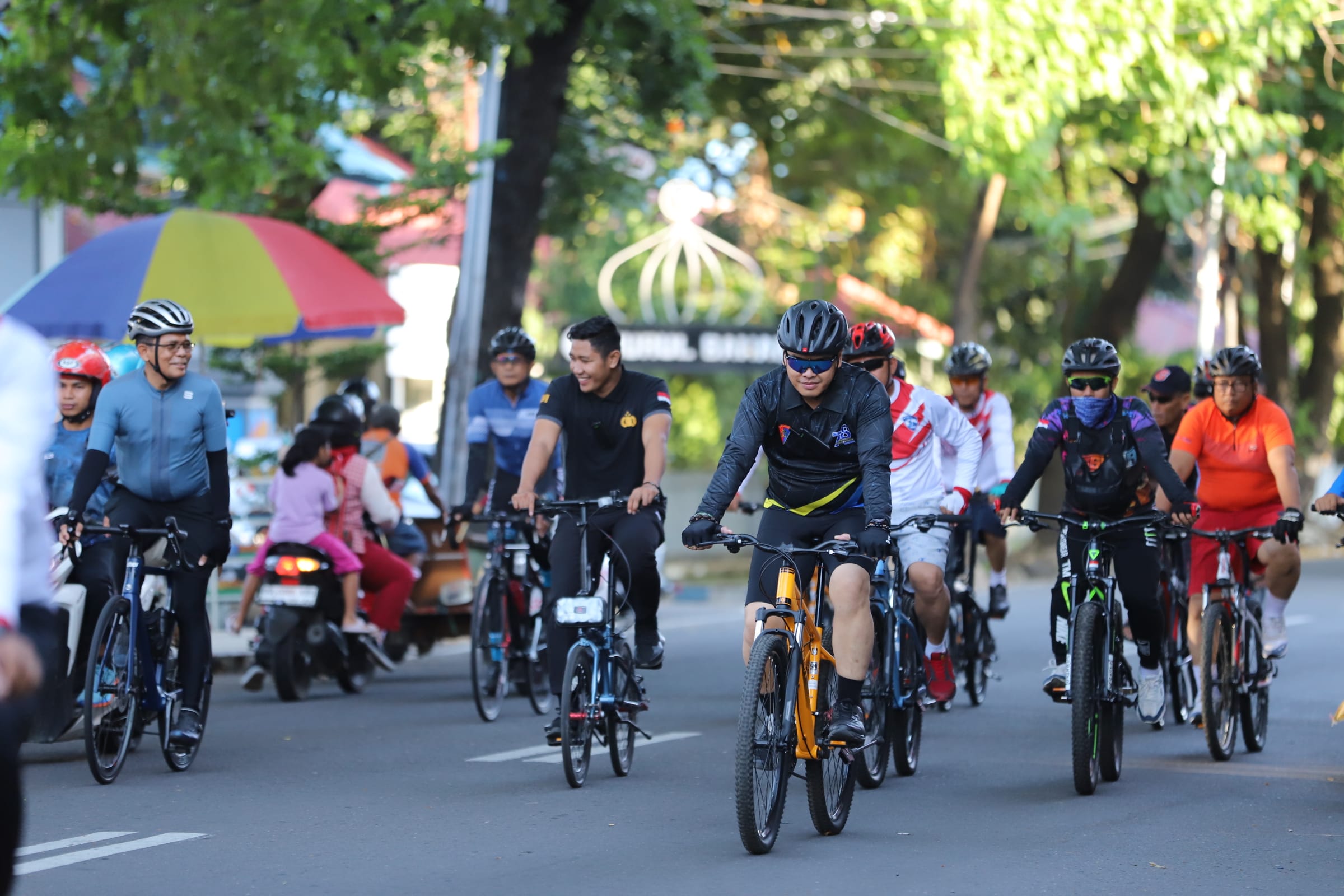 Gebyar Fun Bike Hut Pomal yang di ikuti oleh ribuan masyarakat di lepas langsung oleh Wadan Lantamal VI Kolonel Laut (P) Dados Raino.