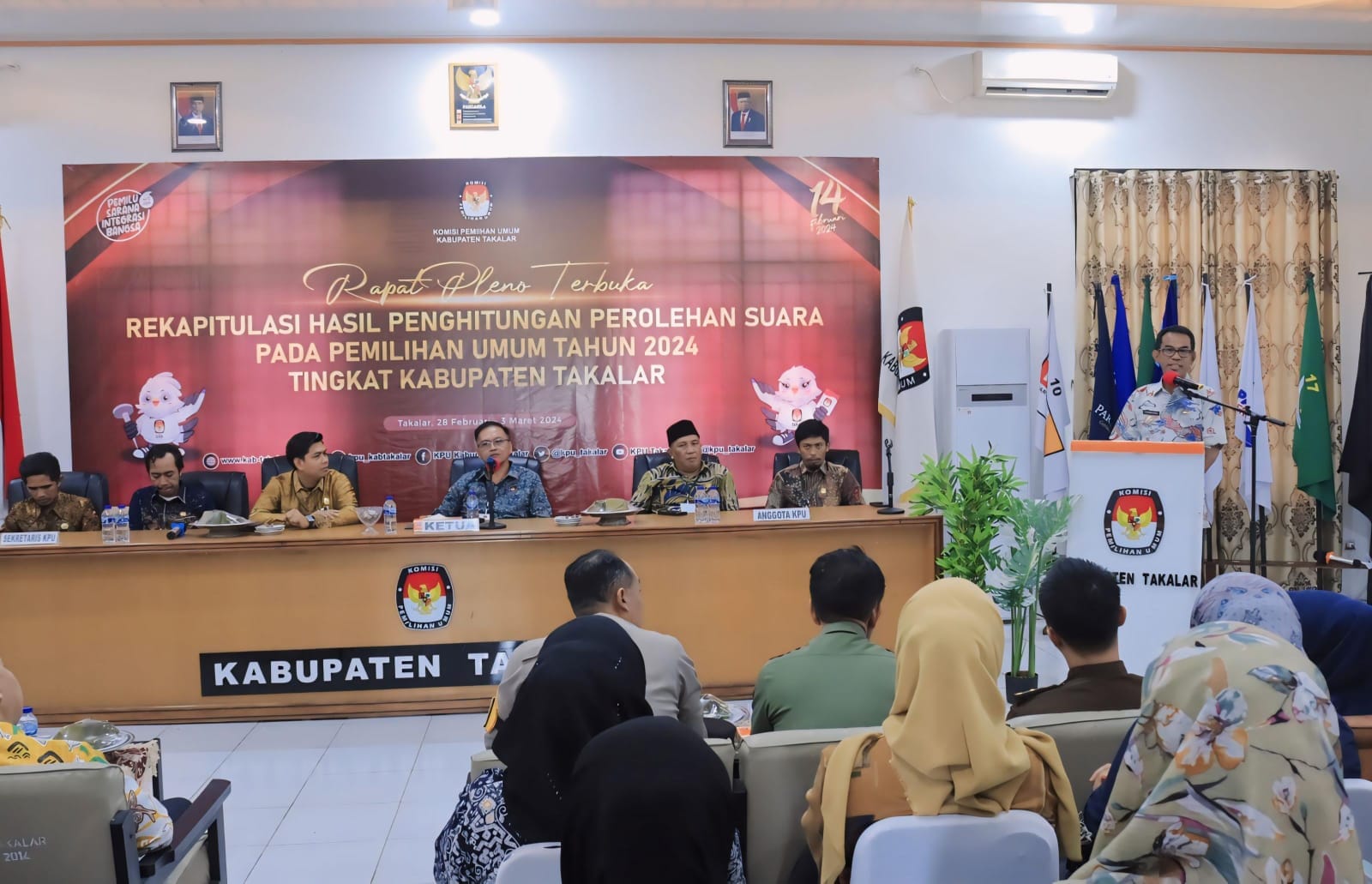 TAKALAR, SUARASELATAN – Pj. Bupati Takalar, Setiawan Aswad, bersama Ketua DPRD Takalar, Forkopimda Takalar, para Komisioner KPU dan para Pimpinan Partai menghadiri Rapat Pleno Terbuka Rekapitulasi Hasil Pemilu 2024 di Kantor Komisi Pemilihan Umum Takalar, Kamis (29/02/24).