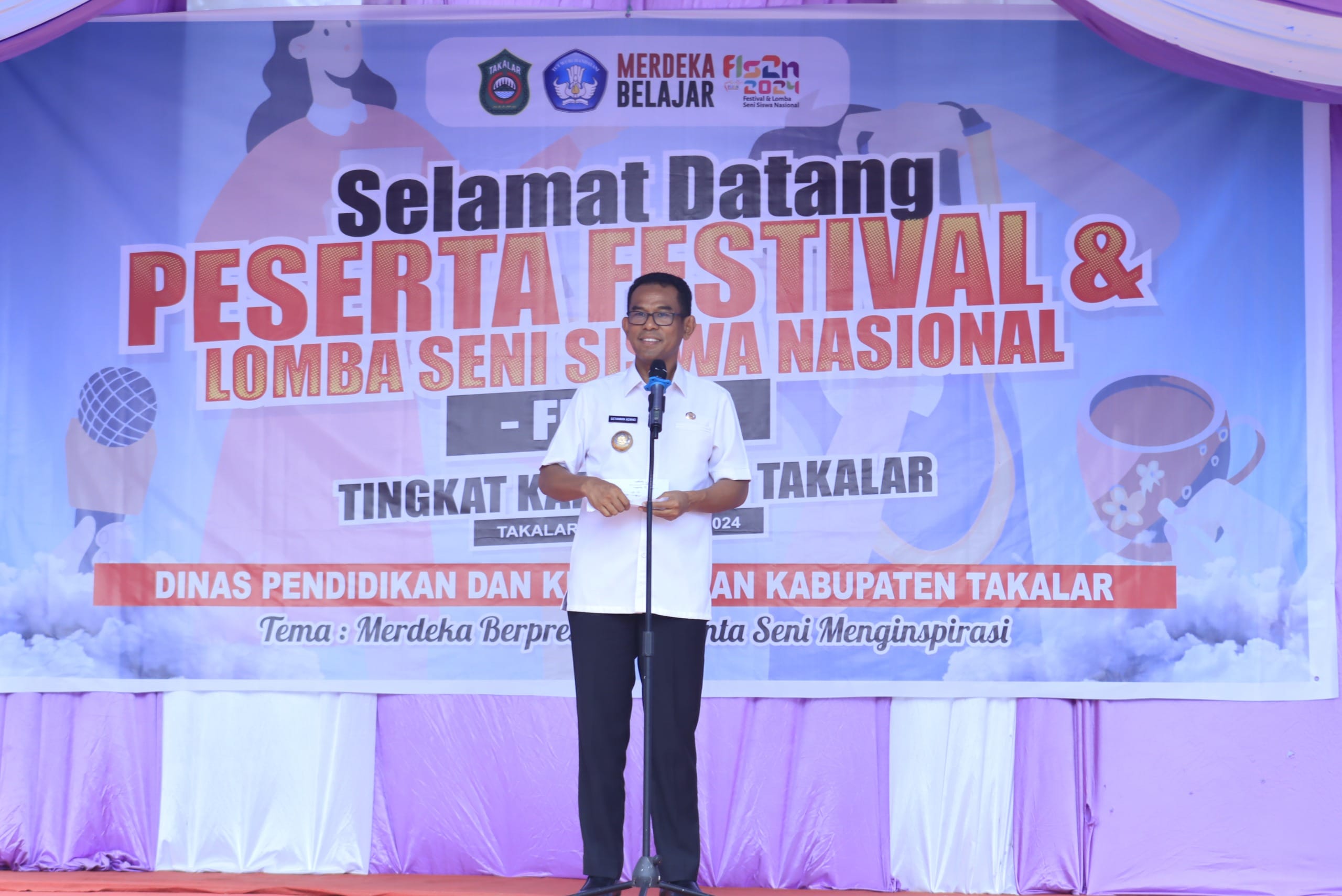 TAKALAR, SUARASELATAN – Memperingati Hari Pendidikan Nasional, Pemerintah Kabupaten Takalar melalui Dinas Pendidikan telah menyelenggarakan Lomba Seni Siswa Nasional dirangkaikan dengan Pameran Sekolah Penggerak Angkatan 1, 2 dan 3 serta Sekolah Implementasi Kurikulum Merdeka Mandiri yang dibuka oleh Pj. Bupati Takalar, Setiawan Aswad. Rabu (24/04/24)