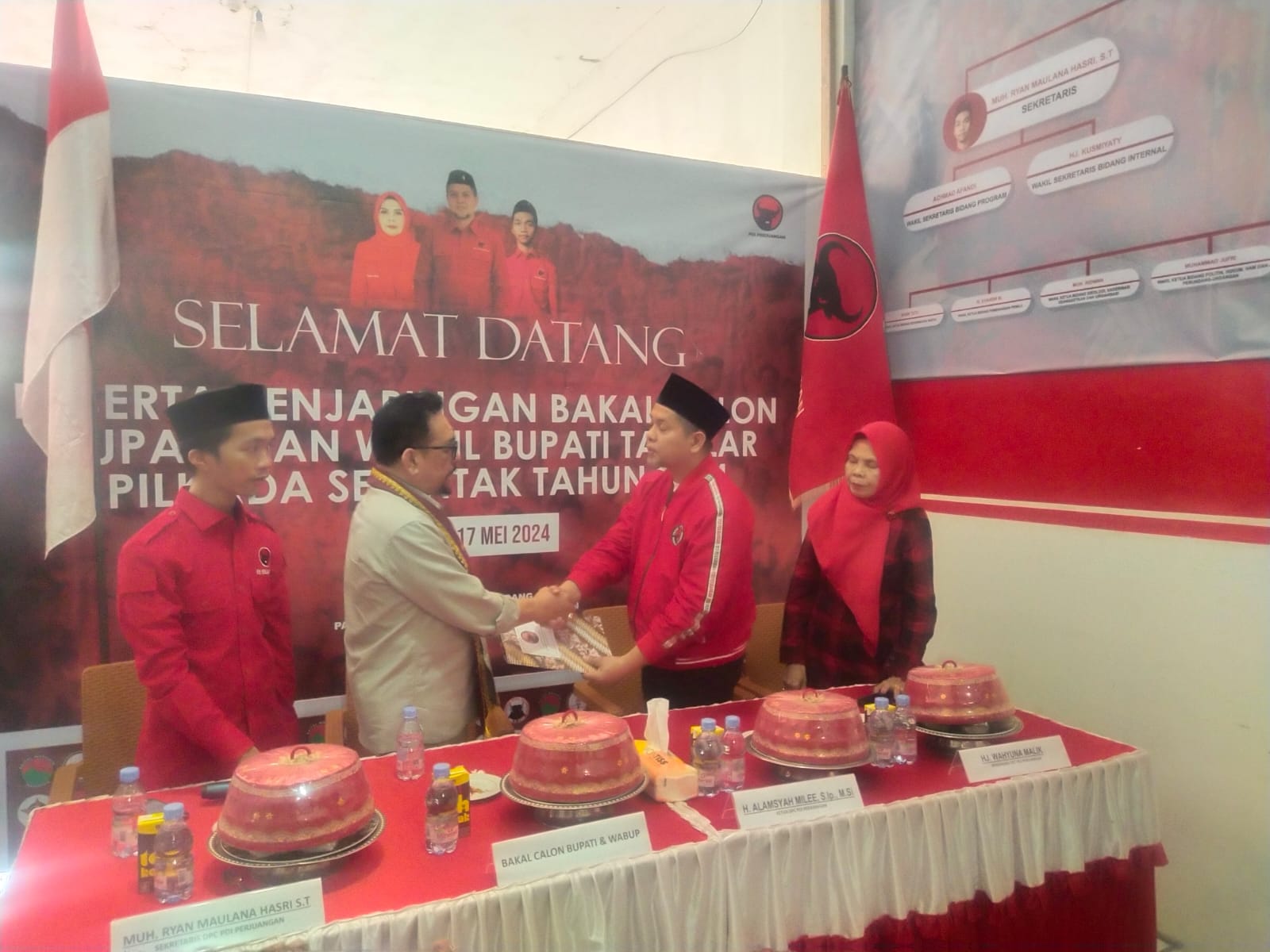 “Hari ini jam 9.30 bapak IR. H. Amin Yakub, secara resmi mengembalikan formulir pendaftaran sebagai calon bupati di Partai PDIP, beliau ini adalah birokrat sejati, birokrat senior,”. Ujar Alamsah Mile