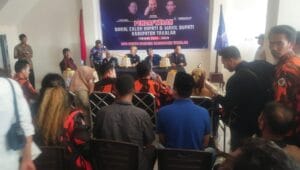 “Prosesi hari ini adalah pendaftaran dari saudara Wahyudin Mapparenta, pada kesempatan ini, saya akan serahkan format pendaftaran, jadi saya harap semua berkas yang diperlukan itu dilengkapi sampai batas waktu besok 7 Mei 2024”. Ujarnya di hadapan ribuan massa.