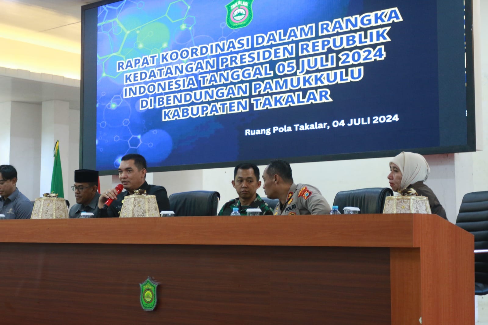 TAKALAR, SUARASELATAN – Pj. Bupati Takalar, Setiawan Aswad, memimpin rapat koordinasi persiapan kedatangan Presiden Republik Indonesia Ir. Joko Widodo beserta Ibu Negara di kabupaten Takalar. Rapat berlangsung di Ruang Pola Kantor Bupati Takalar. Kamis, (04/07/24).