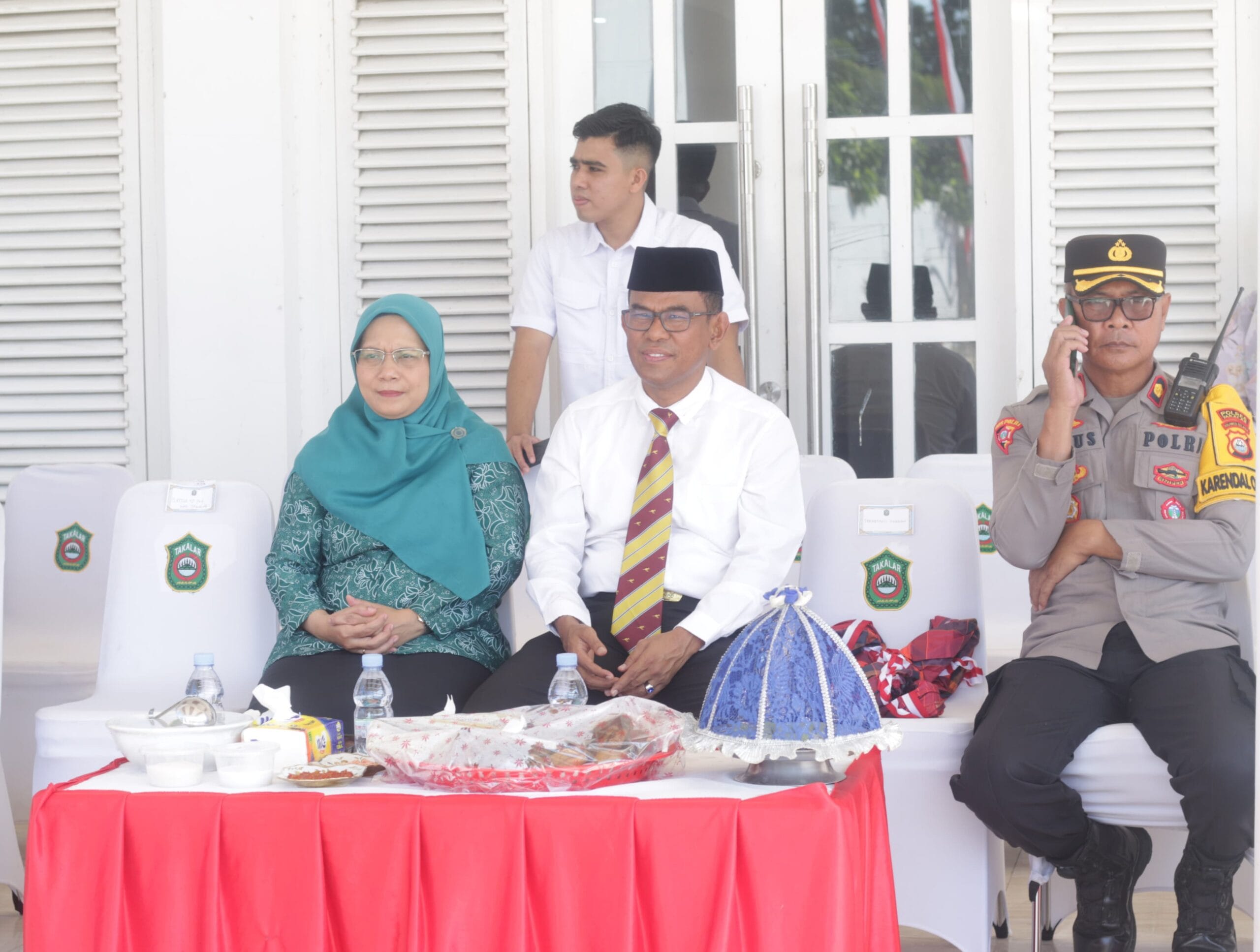 TAKALAR, SUARASELATAN– Pj. Bupati Takalar Setiawan Aswad yang didampingi Pj. TP. PKK Kabupaten Takalar Sri Astuti Thamrin menyaksikan langsung pelepasan Lomba Karnaval dan Gerak Jalan Indah dalam menyambut HUT Kemerdekaan Ke-79 Republik Indonesia oleh Kadis Pendidikan dan Kebudayaan Takalar, Muh. Darwis yang bertempat di halaman Rumah Jabatan Bupati Takalar, Jln. Jendral Sudirman, Kecamatan Pattallassang, Rabu (14/8/2024).