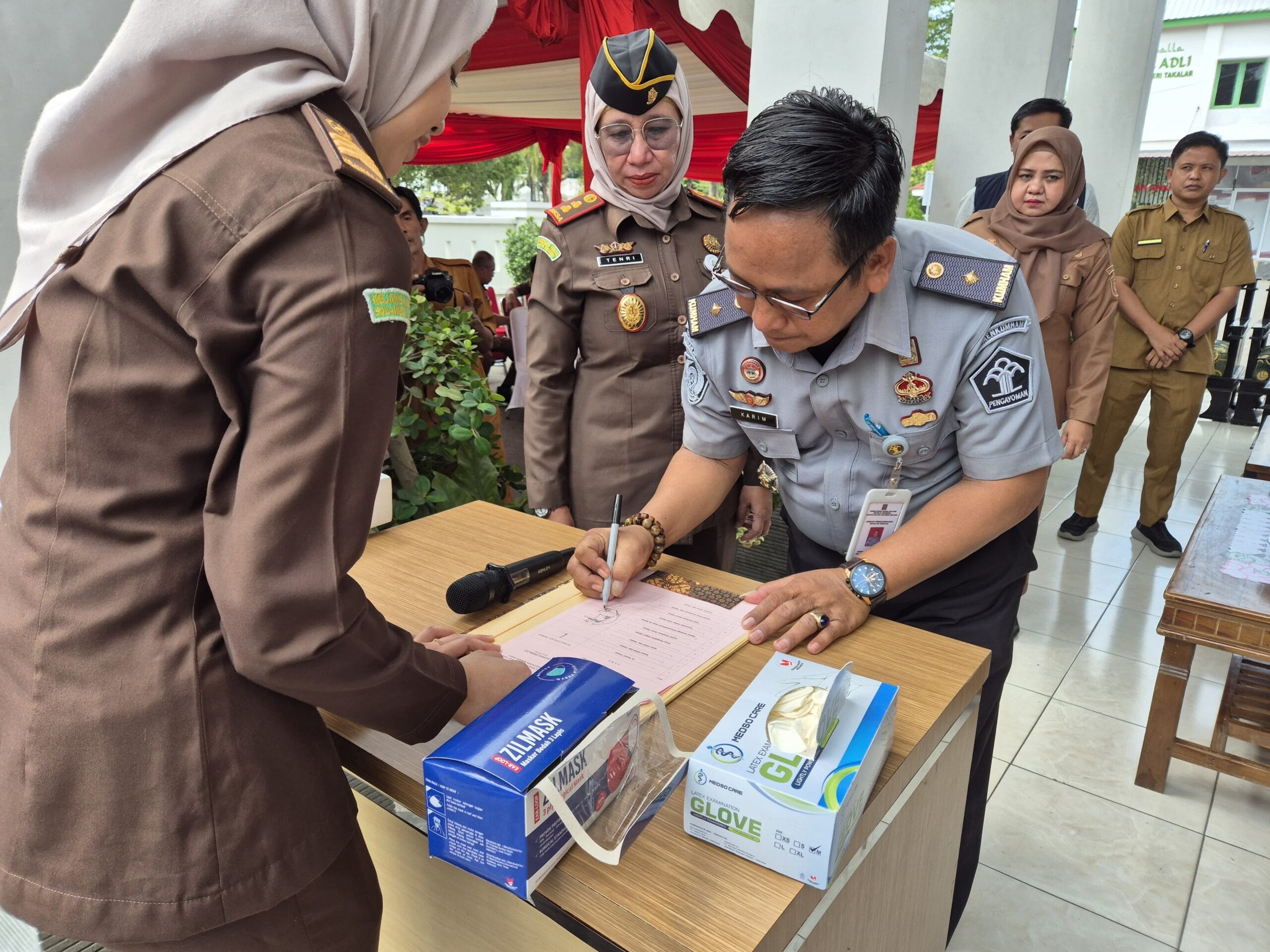 TAKALAR, SUARASELATAN – Kepala Seksi Bimbingan Narapidana/Anak Didik, Lembaga Pemasyarakatan (Lapas) Kelas IIB Takalar, Abdul Karim menghadiri undangan pemusnahan barang bukti yang telah memiliki kekuatan hukum tetap (inkracht) di halaman kantor Kejaksaan Negeri Takalar, Selasa (24/9).