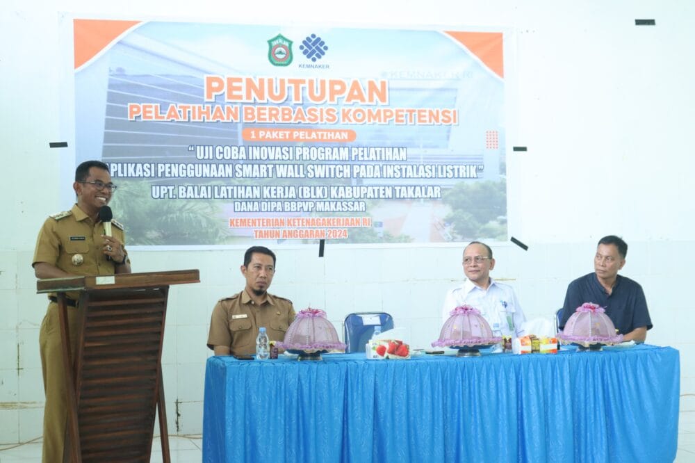 Sementara, dalam laporannya Kepala UPT Balai Latihan Kerja (BLK) Takalar, Basri, menyampaikan bahwa Inovasi utama dari pelatihan ini adalah kemampuan mengatur listrik melalui perangkat smartphone, memungkinkan peserta untuk mengendalikan lampu rumah dari jarak jauh. Dan dari pelatihan ini seluruh peserta dinyatakan lulus 100%.