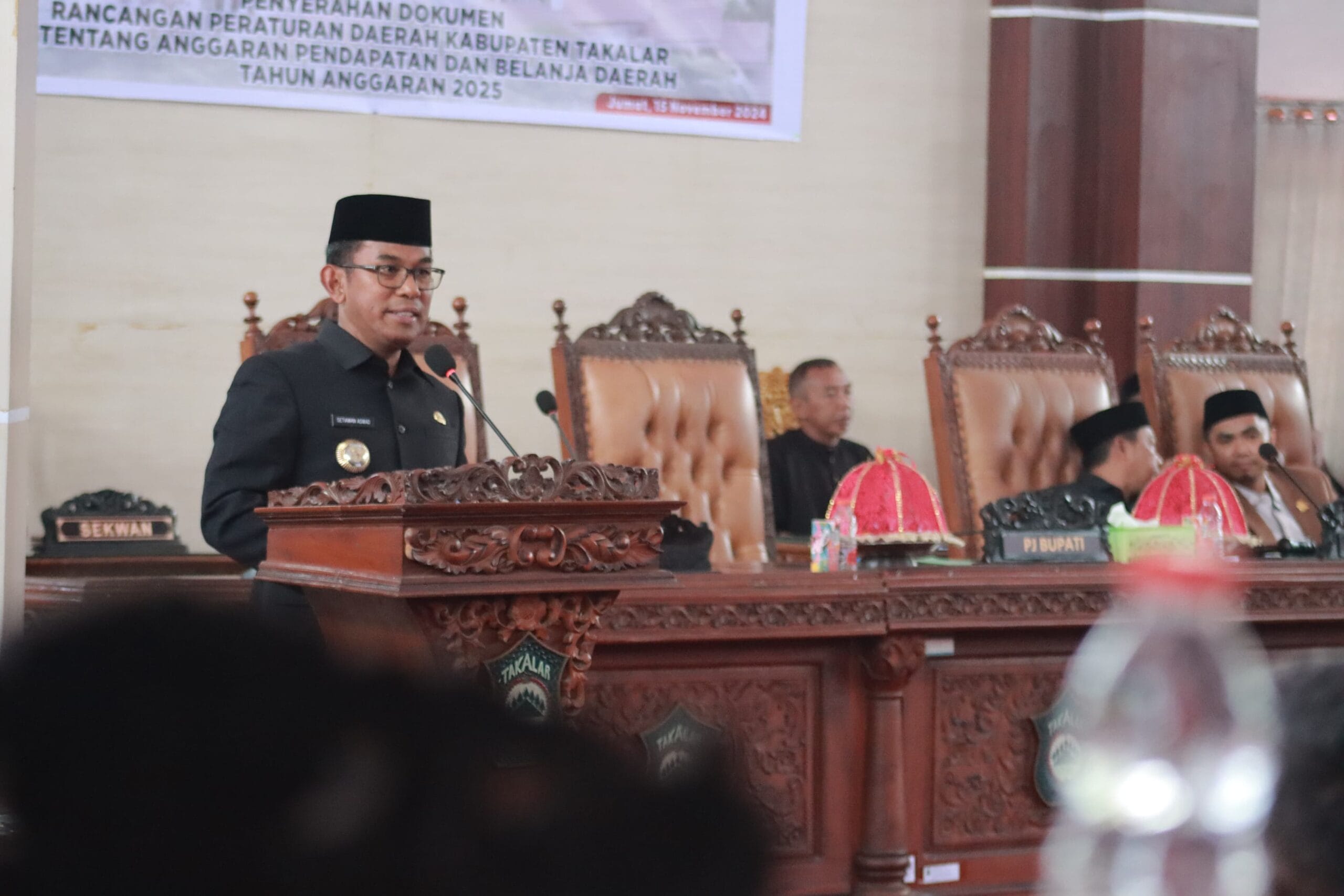 Pj. Bupati Takalar menyerahkan langsung Dokumen Ranperda Tentang APBD Tahun Anggaran 2025 kepada DPRD Takalar yang diterima oleh Wakil Ketua DPRD dan disaksikan Forkopimda Takalar, Sekda Takalar, Pejabat Adimistrator dan Pejabat Pengawas Kab. Takalar.