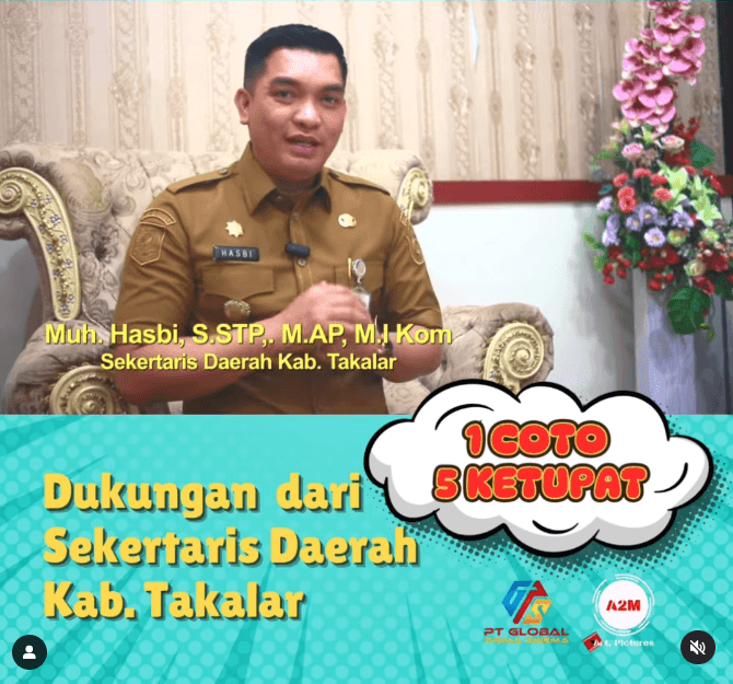 Pemerintah Daerah kabupaten Takalar mengucapkan banyak terimakasih kepada hasil karya anak bangsa demi mengangkat kearifan lokal, yang mana cukup banyak budaya kita yang butuh di publish untuk di tonton seluruh masyarakat Indonesia, Ungkap Muhammad Hasbi di akun media sosialnya. Kamis (21/11/24).