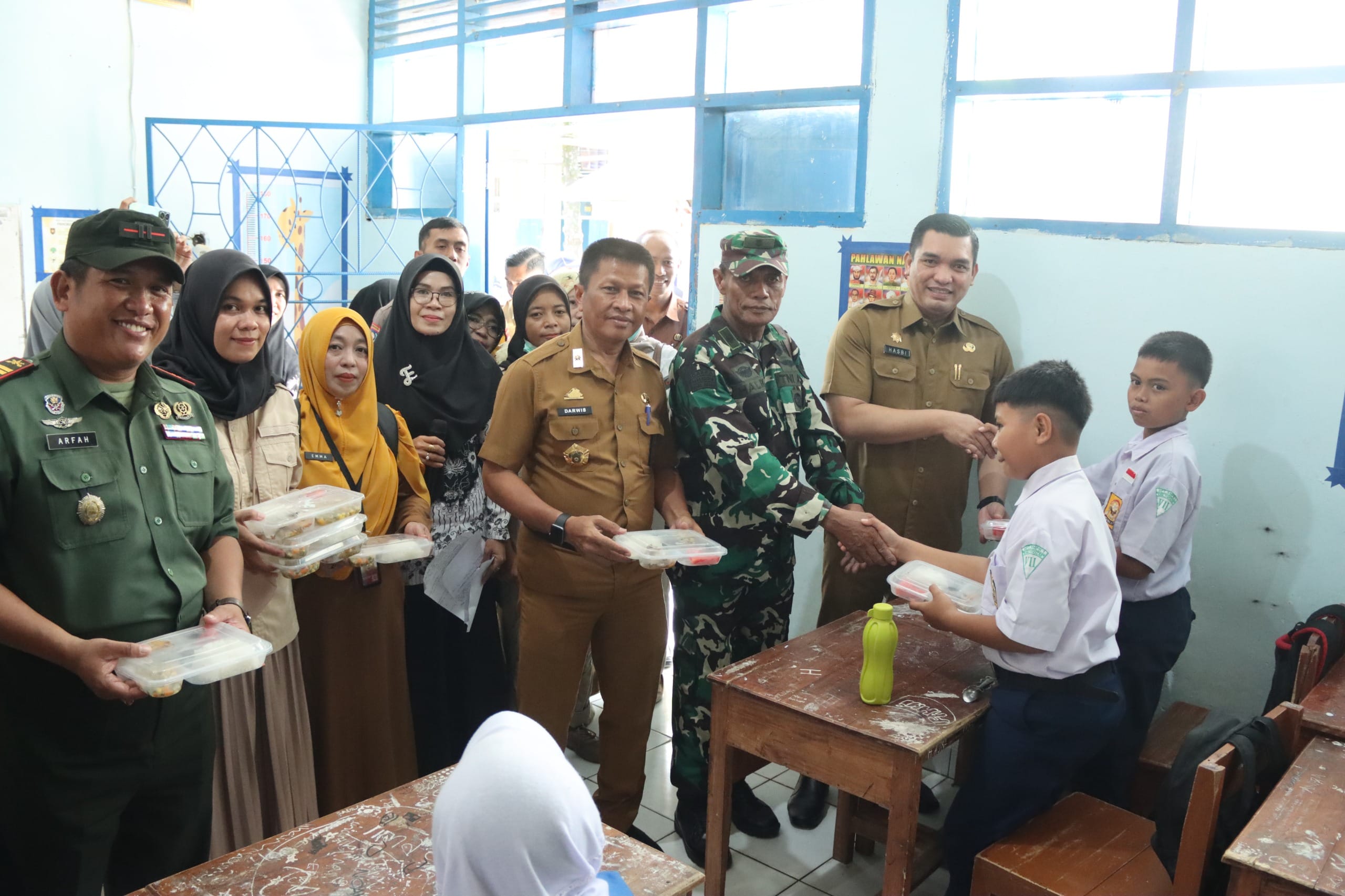Kedatangan Sekda Takalar didampingi Kepala Dinas Pendidikan Muh. Darwis dan petugas MBG disambut antusias oleh para siswa.