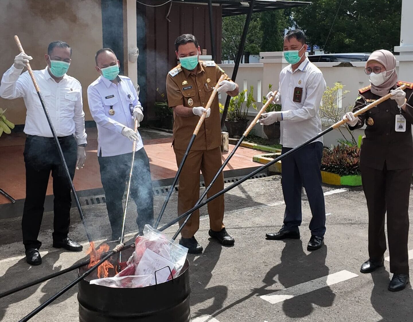 Pemusnahan dipimpin langsung Kepala Kejaksaan Negeri Takalar Tenriawaru,.SH,.MH dan turut disaksikan Perwakilan Forkopimda Takalar serta para penyidik dan staf Lingkup Kejaksaan Negeri Takalar di Halaman Kantor Kejaksaan Negeri Takalar, Senin 28 April 2025.