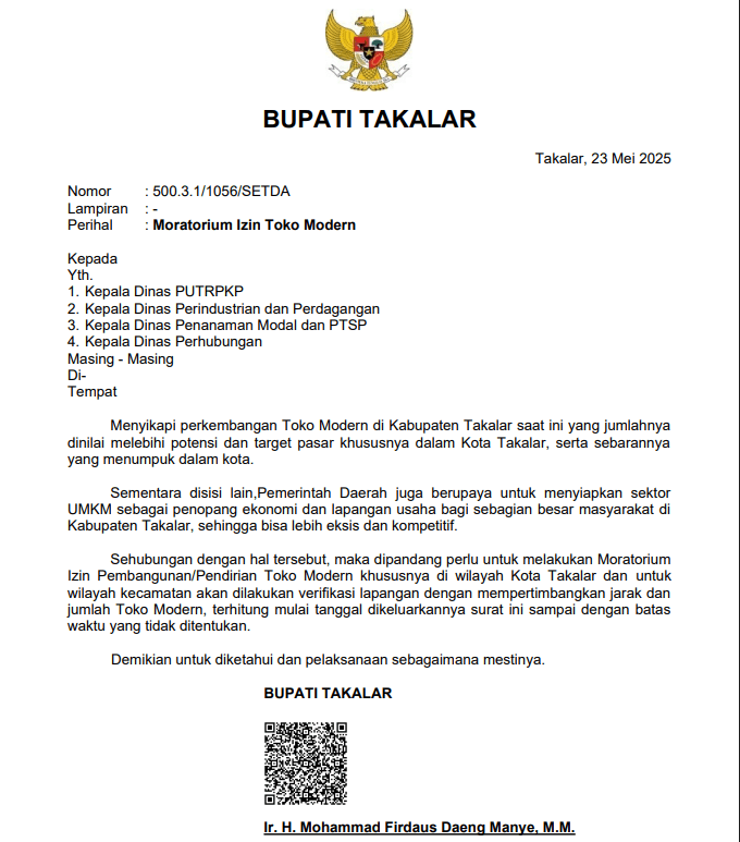 waktu yang tidak ditentukan.”demikian surat tertanggal 23 Mei 2025 yang ditandatangani Bupati Takalar.