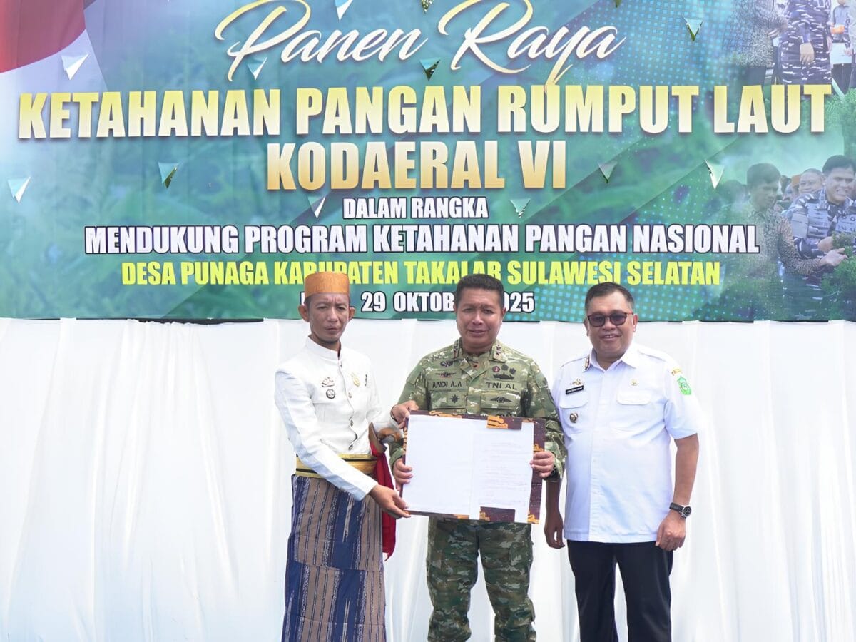 SUARASELATAN.COM, Takalar – Dalam rangka mendukung Program Ketahanan Pangan Nasional, Bupati Takalar Mohammad Firdaus Daeng Manye,.MM bersama Kodaeral VI Laksamana Muda TNI Andi Abdul Aziz, S.H., M.M A menghadiri kegiatan Panen Raya Ketahanan Pangan Rumput Laut Komando Daerah Angkatan Laut (Kodaeral) VI, di Desa Punaga, Kecamatan Laikang, Kabupaten Takalar, Sulsel,