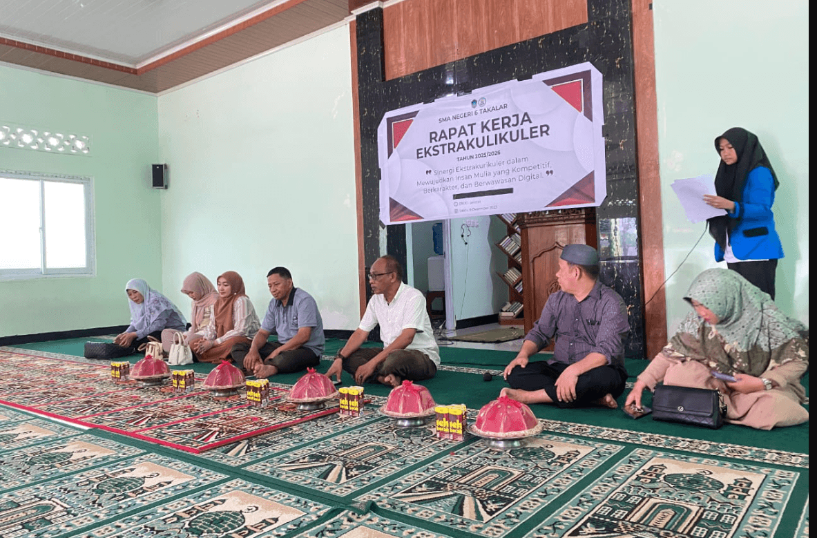 SUARASELATAN.com, Takalar – SMA Negeri 6 Takalar menggelar Rapat Kerja (Raker) ekstrakurikuler pada Sabtu, 06 Desember 2025, bertempat di Masjid Darul Ilmi sekolah. Kegiatan ini diikuti oleh para pembina ekstrakurikuler, demisioner ketua dan wakil ketua, pengurus aktif setiap ekstrakurikuler, serta perwakilan OSIS. Agenda raker difokuskan pada penyusunan dan pemantapan program kegiatan ekstrakurikuler untuk tahun ajaran mendatang.