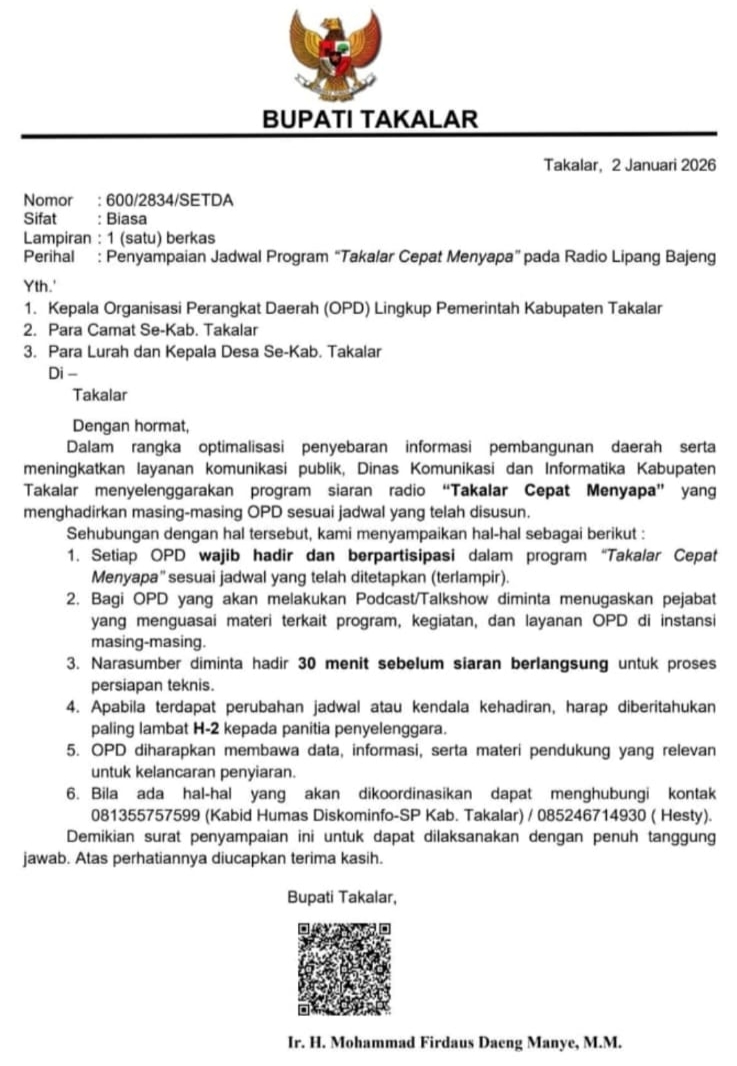 SUARASELATAN.COM, Takalar – ​“Takalar Cepat Menyapa” resmi diluncurkan oleh Dinas Komunikasi dan Informatika (Kominfo) Kabupaten Takalar.